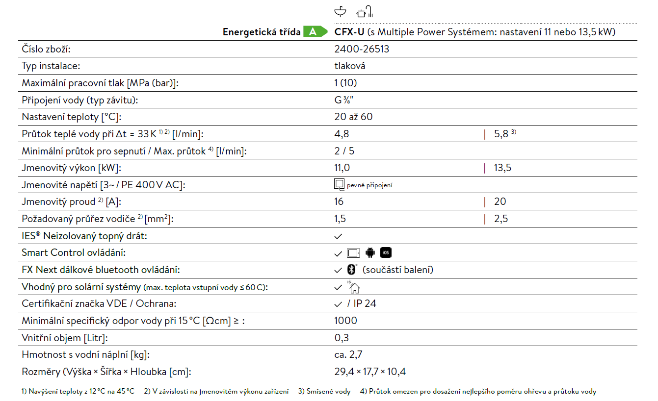 Tento průtokový ohřívač nabízí sofistikované řešení energeticky úsporné dodávky teplé vody v kuchyni nebo koupelně. Kompaktní přístroj je navržen pro skrytou instalaci v blízkosti kuchyňského dřezu nebo v koupelnovém nábytku. Nedílnou součástí ohřívače je Bluetooth dálkové ovládání, které zajistí pohodlné ovládání teploty ze vzdálenosti až 10 metrů. Skrytý ohřívač s dálkovým ovládáním nabízí zcela nové možnosti aplikací v designových interiérech, stísněných prostorech nebo atypických instalací v nepřístupných místech. Přístroj může být instalován v jakékoliv poloze a tak lze využít i velmi malý prostor pro jeho umístění. Ohřívač je vybaven Systém Multiple Power System MPS® pro elektronickou volbu výkonu 11 nebo 13,5 kW a systémem TWIN TEMPERATURE Control TTC®, který zaručuje přesnou a stabilní teplotu vody podle vaší potřeby.